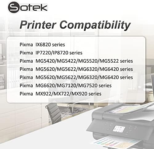 1.Compatible With Printers: ink cartridge, Newest chip version which could 100% compatible with MX922, MX722, MX920, IP7220, IP8720, IX6820, MG5420, MG5422, MG5500, MG5520, MG5522, MG5620, MG5622, MG6320, MG6420, MG6620, MG7120, MG7520 Inkjet Printer