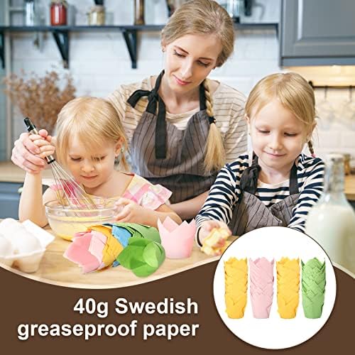 Tulip Style Cupcakes Cups: you will get 400 pieces tulip baking paper wrappers, with 2 different colors for you to choose; These tulip cupcake paper cups can meet your needs of making different flavors of cakes, muffins, and adding a beautiful look to your baked goods