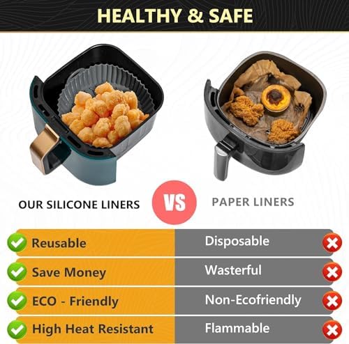 Easy Cleaning – Keeping your air fryer and oven clean is a breeze with our dishwasher-safe reusable silicone liner. It traps liquids and food debris so they don’t create gunk in your fryer or oven
