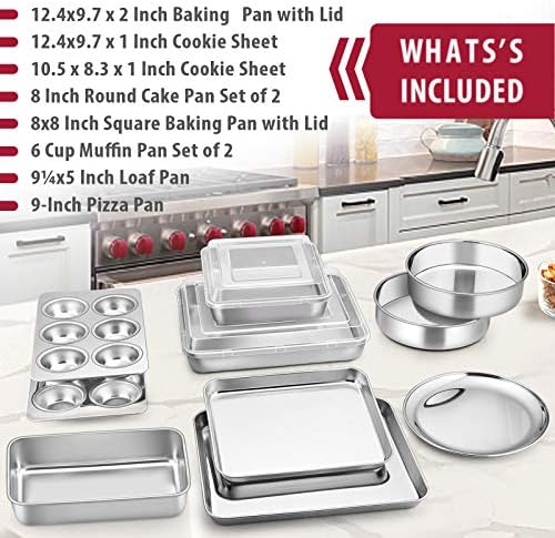 By : The Head Chef | Comments Off on E-far 12-Piece Stainless Steel Bakeware Sets, Metal Baking Pan Set Include Round Cake Pans, Square/Rectangle Baking Pans with Lids, Cookie Sheet, Loaf/Muffin/Pizza Pan, Non-toxic & Dishwasher Safe | On : March 3, 2024 | Category : Bakeware, Baking & Cookie Sheets, Baking Tools & Accessories, Home & Kitchen, Kitchen & Dining