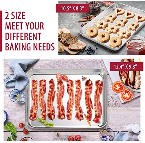 TeamFar Baking Sheet Set of 2, Baking Pans Tray Cookie Sheet Stainless Steel, Non Toxic & Healthy, Mirror Finish & Rust Free, Easy Clean & Dishwasher Safe