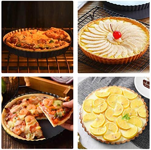 【Removable Bottom Design】The Quiche Pans has a removable sturdy bottom, and the base can be easily detached from the pan.This special design allows you to easily separate the pie from the plate and also makes cleaning the plate easy.