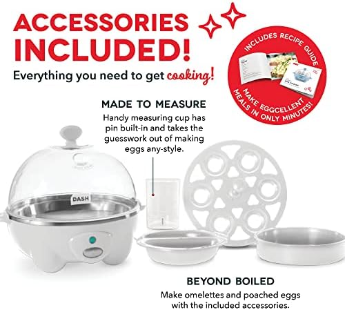 DASH Rapid Egg Cooker: 6 Egg Capacity Electric Egg Cooker for Hard Boiled Eggs, Poached Eggs, Scrambled Eggs, or Omelets with Auto Shut Off Feature – White (DEC005WH)