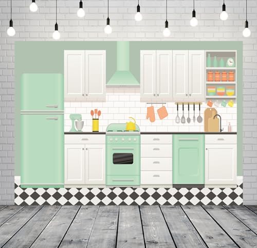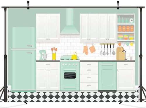 👩🍳 Apply: This cute kitchen backdrop is suitable for any holiday, such as Christmas, Valentine’s Day, Easter, and any holiday you can think of. It is also applicable to any display that needs kitchen and baking background, such as school display, event play, online live broadcast, baking class video shooting, children and family portrait,Indoor and outdoor banners, etc.