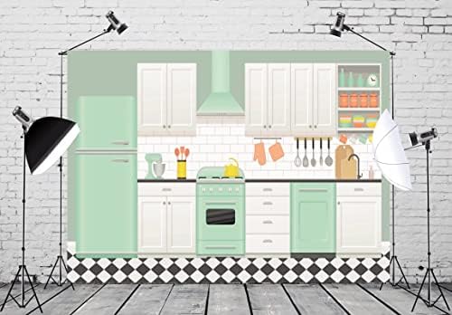 Fabric 7x5ft Cartoon Kitchen Backdrop Kids Baking Cooking Background for Photography Kitchen Theme Cooking Party Decor Online Bake Class Banner Baby Children Easter Photoshoot Photo Props