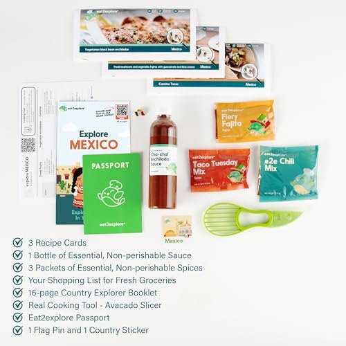 Introducing the Kids Interactive & Educational Real Cooking Set for Families! This exciting kit includes 3 local recipe cards with key ingredients, cooking tools, and a fun Kids Explorer Guide. Embark on a culinary adventure with the Explore Mexico Cooking Kit, where children can learn about traditional Mexican dishes while developing important cooking skills. Get ready to cook up some delicious memories together!