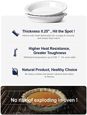 【CERAMICS IS A HEALTHIER CHOICE THAN METAL BAKEWARE】The ceramic pie dish elevates pie baking from ordinary to art as it evenly distributes the heat during baking. Durable for everyday use. The highly resistant glaze does not absorb food odors or flavors.