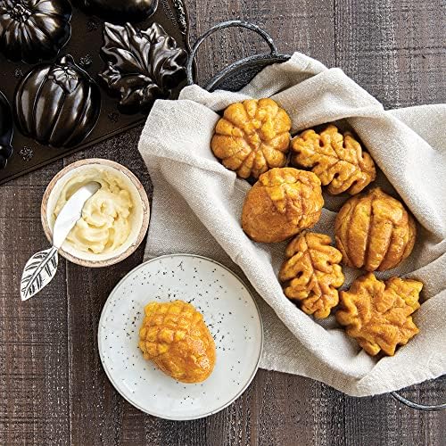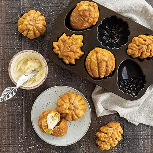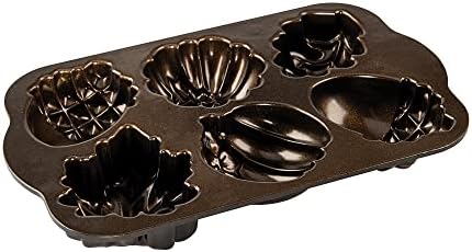 Made from durable cast aluminum, this pan features six unique autumn-themed shapes, including a pumpkin, acorn, and leaf. The intricate detailing on each shape adds a touch of elegance to your baked goods, making them perfect for entertaining or giving as gifts.