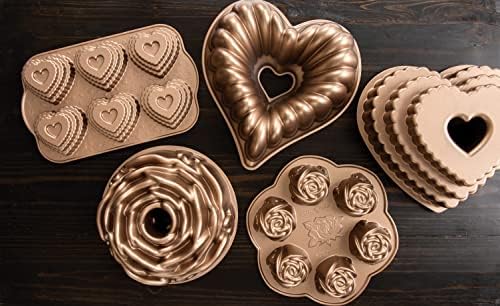 The Nordic Ware Platinum Rose Cast Aluminum Bundt Pan is made from cast aluminum, which ensures even heating for perfect baking results every time. This pan is built to last, so you can rely on it for years to come. The copper finish not only adds a touch of elegance to your kitchen, but it also helps to prevent sticking, making cleanup a breeze.
