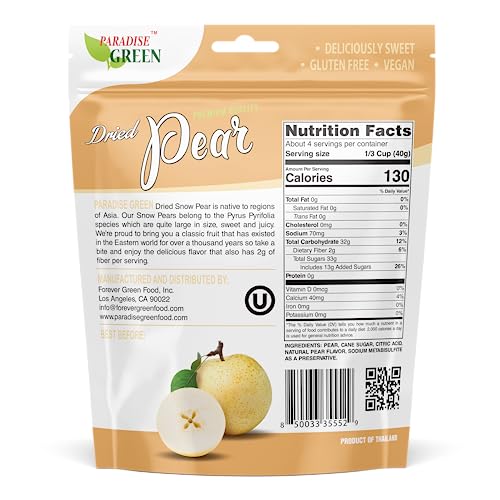 In conclusion, Paradise Green Classic Dried Pear is a fantastic snack option for anyone looking for a healthy and delicious treat. With their organic, non-GMO, and gluten-free ingredients, you can enjoy them guilt-free. Whether you eat them on their own or use them in your favorite recipes, these dried pears are sure to become a pantry staple. So why not stock up on a few bags today and experience the delightful flavor of Paradise Green Classic Dried Pear for yourself?