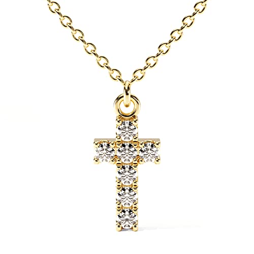 14k Solid Gold Minimalist Cross Diamond Necklace for Women in Yellow, White, Rose Gold