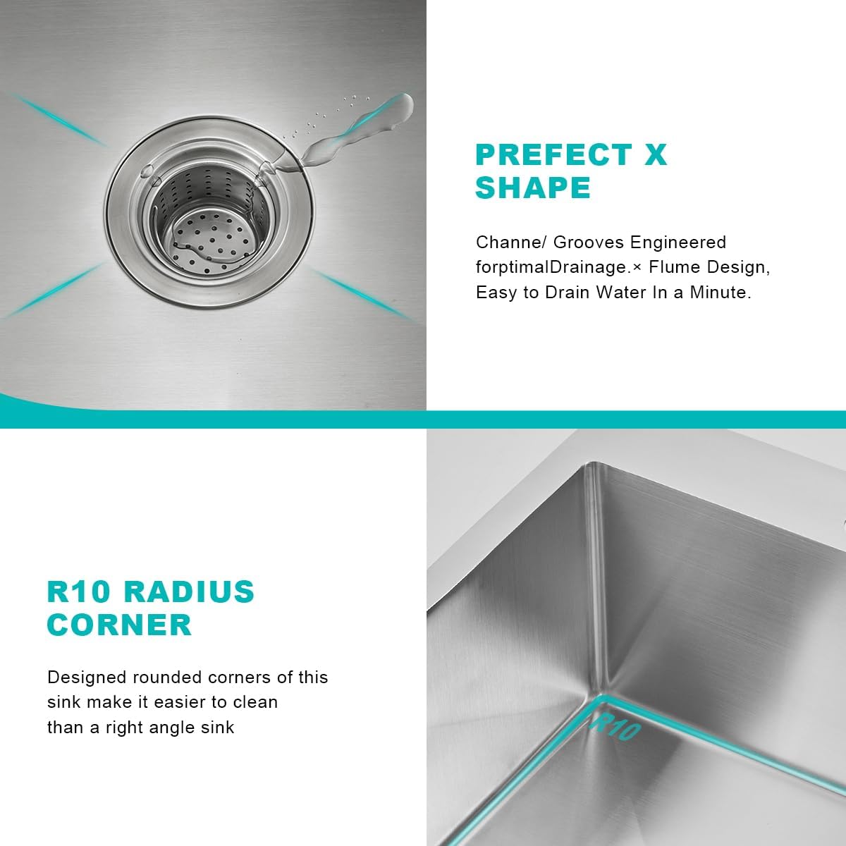 Easy to Drain: Little bottom slope design around drain hole and X grooves water guide line on bottom, which is faster to remove water.X-shape flow line to avoid clogging.while at the same time retaining elegant look and easy to clean.