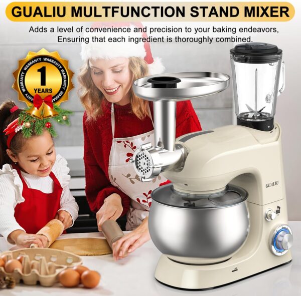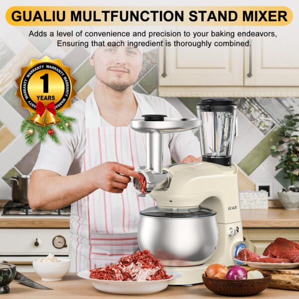 GUALIU 6-IN-1 Multifunctional Stand Mixer Features the ability to make a variety of recipe ingredients