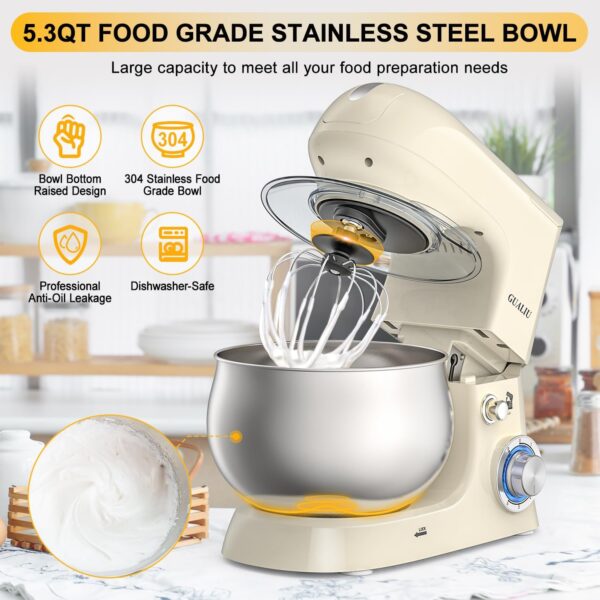 🧇𝟐𝟎𝟐𝟑 𝐍𝐞𝐰 𝐔𝐩𝐠𝐫𝐚𝐝𝐞 𝐏𝐫𝐨𝐟𝐞𝐬𝐬𝐢𝐨𝐧𝐚𝐥 𝐊𝐢𝐭𝐜𝐡𝐞𝐧 𝐒𝐭𝐚𝐧𝐝 𝐌𝐢𝐱𝐞𝐫: GUALIU 7 in 1 Kitchen Stand Mixer with high performance motor, with a variety of convenient and practical functions, including kitchenaid dough hook, mixer, whisk, meat grinder, noodle machine, sausage machine, juice beater. It also comes with a 5.3Qt stainless steel bowl mixer, scrape rand splash cover to help add ingredients without creating a mess, Easy to enjoy the fun of baking.
