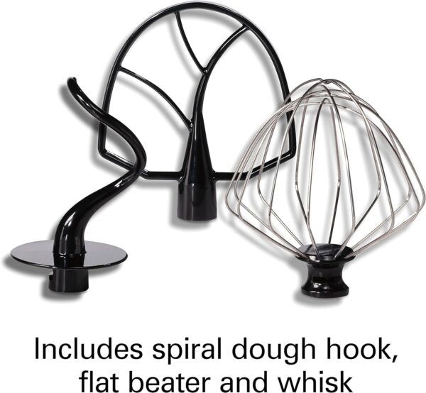 FLAT BEATER, WHISK AND SPIRAL DOUGH HOOK INCLUDED: Versatile kitchen stand mixer attachments take you from mixing cookie dough and cake batter to whipping cream and kneading pizza dough. The convenient splash/pour shield helps prevent splatters.