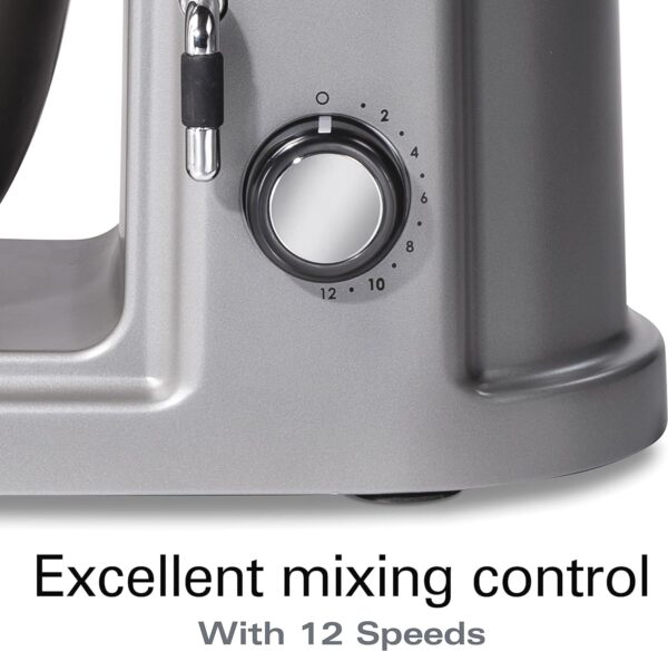 The All-Metal Stand Mixer boasts a powerful motor and 12 speed settings, allowing you to mix, knead, and whip with ease. The specialty attachment hub expands your mixing possibilities, making this mixer truly versatile.