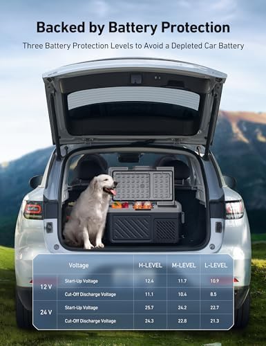 FAST-COOLING SYSTEM: Equipped with a high-quality compressor, the AstroAI Portable Freezer boasts rapid cooling performance with both MAX and ECO modes. Its MAX Mode can cool down to 32 ℉ within 25 Minutes, while its ECO Mode optimizes energy efficiency. Moreover, the H/M/L battery protection modes help avoid fully draining your car battery, ensuring worry-free usage.