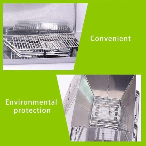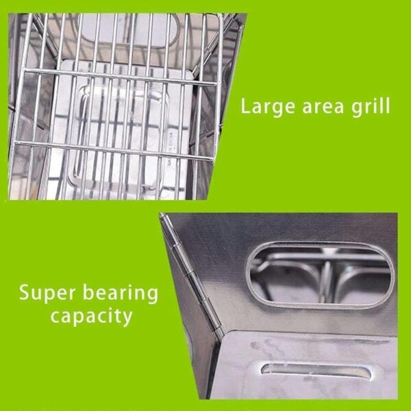 [PREMIUM QUALITY DESIGN] The barbecue grill is made of stainless steel and the grill is also the same.Resistant to heat and scratches, not easy to deform and rusty.The Drawer-type Allen net with 12-hole ventilation opening makes it burn more vigorously in oxygen.