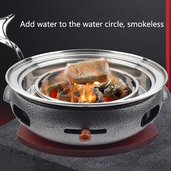 How to use: (1) Before use, add 3/2 clean water to the ash tray to prevent it from drying out, heat insulation, and effectively cool the furnace body. (2) Add 3/2 clean water to the water circle, and the water circle receives the dripping oil , Reduce smoke, heat insulation and cooling