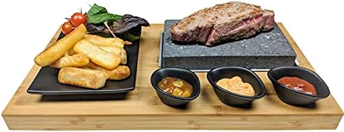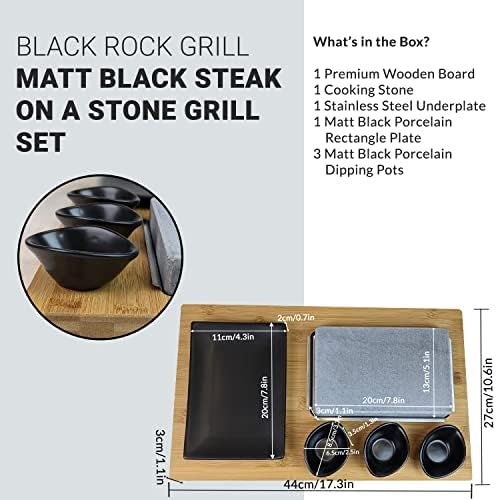 Black Rock Grill Steak Stone, Hot Stone Grill – Sizzling Hot Rock, Indoor Grill, Cooking Stone with Matt Black Ramekins and Side Plate (One Standard Set)