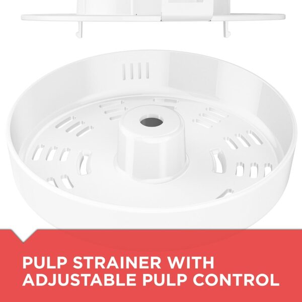 Adjustable Pulp Control – Pulp collects in the strainer so you can throw it out or use it in other recipes