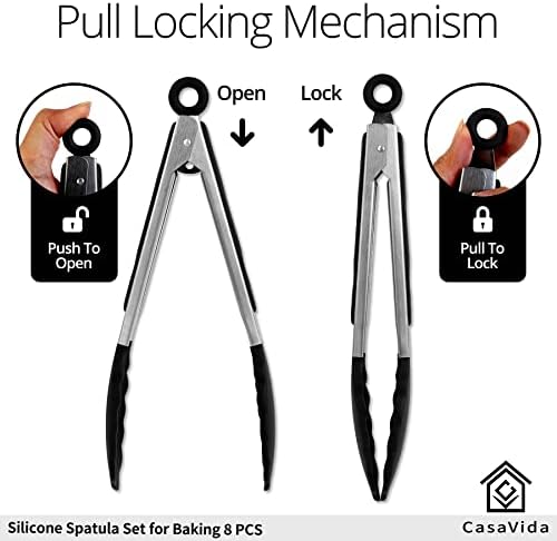 ⭐ Versatile Kitchen Tool – CasaVida silicone spatulas set comes with 6 different varieties of spatulas, 1 Basting brush and 1 food tongs. Whether you’re frosting cakes, mixing butters or flipping pancakes, you’ll be covered. A comprehensive set of tools for your baking experience.