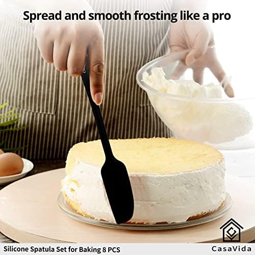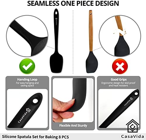 ⭐ Elegant Design and Durable – CasaVida kitchen all-around silicone spatulas set has Higher-strength flexibility, corrosion resistance, and temperature resistance. The spatulas have ergonomically design handle with long extended length, a non-slip texture, soft touch surface and thickened treatment, feel perfectly comfortable. These silicone spatulas & Spoonula can hold up to the demanding use of cooking, baking, mixing …etc.