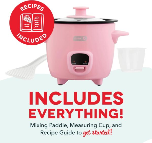 DASH Mini Rice Cooker Steamer with Removable Nonstick Pot, Keep Warm Function & Recipe Guide, Half Quart, for Soups, Stews, Grains & Oatmeal – Pink