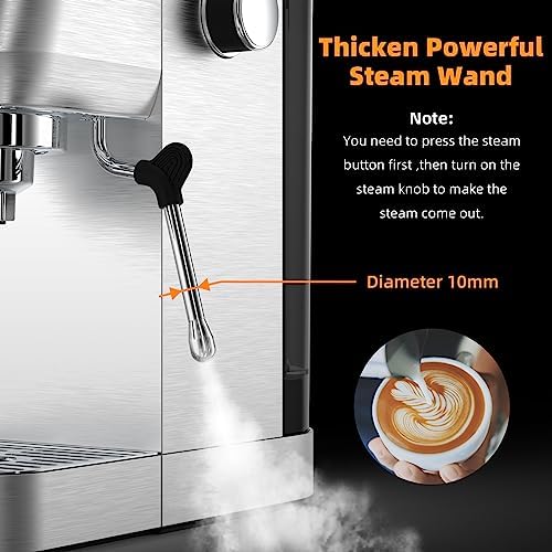 The Espresso Machine, 20 BAR Espresso Maker with Milk Frother/Steam Wand is designed for ease of use. Simply fill the removable 48oz water tank, add your favorite espresso grounds, and press a button to start brewing. The intuitive design makes it perfect for beginners and experienced baristas alike.