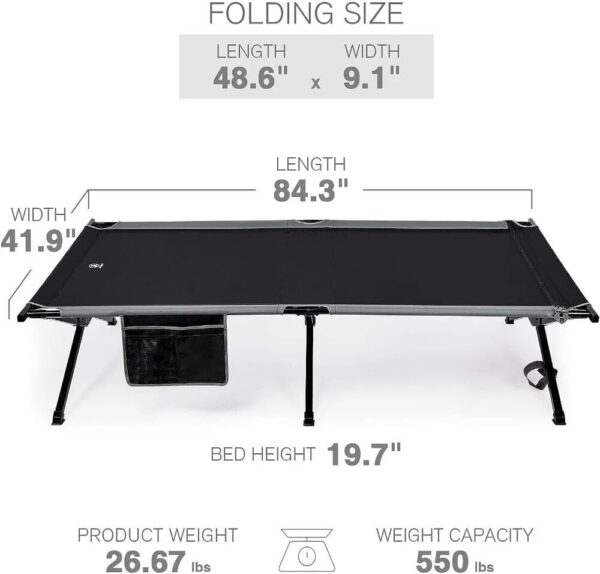 Capable of supporting up to 550 lbs, this cot is built for everyone. Its robust structure is ideal for both individual comfort and family use.