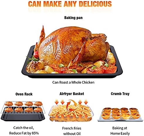 【 Come with 4 extra accessories 】1 Baking pan to bake the chicken or roast,1 Airfryer Basket to Fried French fries, 1 Oven Rack to Bake chicken wings and toast or dried fruit,1 drip tray that catches fat and oil,this air fryer can create more possibilities which means you’re able to cook more types delicious with the E-recipe.