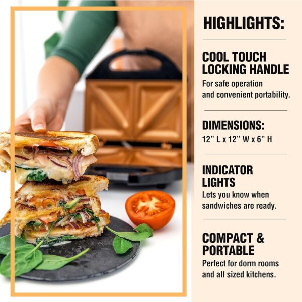 Compact & Portable: Designed for easy portability, the Gotham Steel sandwhich maker features a compact and lightweight design making it the perfect option for dorm rooms and all sized kitchens