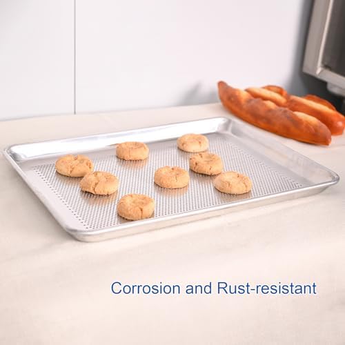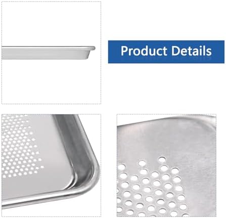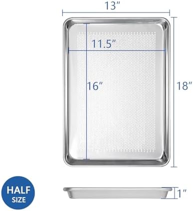 The HARDURA Aluminum Perforated Baking Sheet Pan stands out with its premium quality construction, measuring 18”L X 13”W X 1”H. The perforated design ensures optimal heat circulation, leading to consistent and even baking results. It is also made from durable aluminum, guaranteeing long-lasting performance.