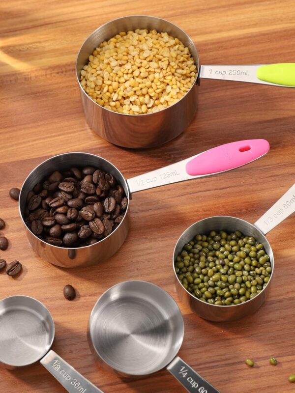 Customers who have purchased the Joyhill Stainless Steel Measuring Cups and Spoons Set rave about the quality and convenience of this set. They love the colorful design and find the soft touch silicone handles comfortable to use.