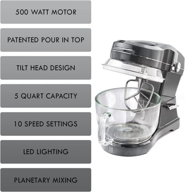 When it comes to serious baking, having the right tools can make all the difference. The Kenmore Elite Stand Mixer Ovation 5 qt Glass Bowl With Lid Revolutionary Pour-In Top 360-Degree Splash Guard 500 Watt 10-Speed Motor Tilt Head Beater Whisk Dough Hook Planetary Mixing Grey is a top-of-the-line appliance designed for professional bakers who demand precision, power, and efficiency in their baking projects.