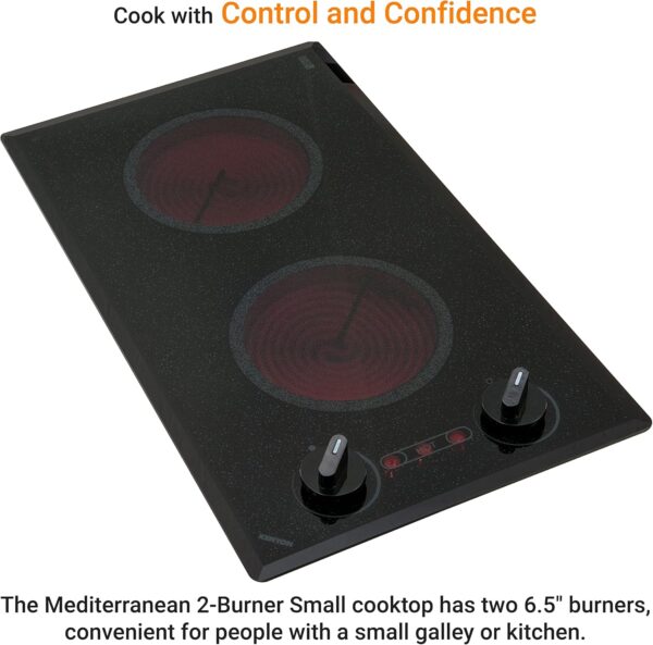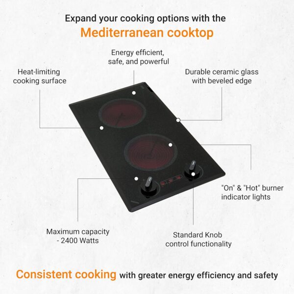 Great Performance: The easy-to-clean and durable ceramic glass top, superior performance, versatility, and space-saving design of our 120V Mediterranean 2-burner small electric cooktop will help you unleash your culinary creativity like never before.