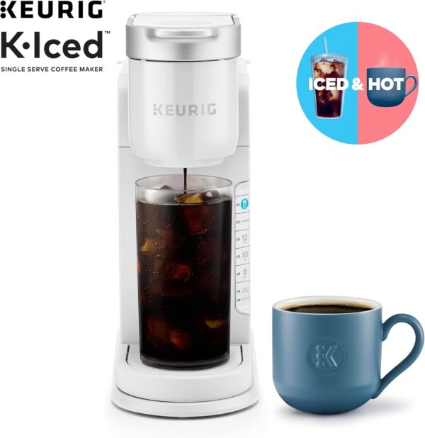The Keurig K-Iced Single Serve Coffee Maker in classic white is a convenient and versatile addition to any kitchen. Enjoy hot coffee in the morning and refreshing iced coffee in the afternoon with just the touch of a button. This compact and stylish machine brews your favorite beverages quickly and easily, perfect for coffee lovers on the go.