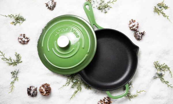 The Larder & Vine 5-Piece Enameled Cast Iron Cookware Set is made from high-quality cast iron that is known for its durability and even heat distribution. This set is perfect for all your cooking needs, whether you’re sautéing vegetables, searing meats, or simmering soups and stews. The enameled finish not only makes this cookware set easy to clean but also adds a beautiful touch to your kitchen.