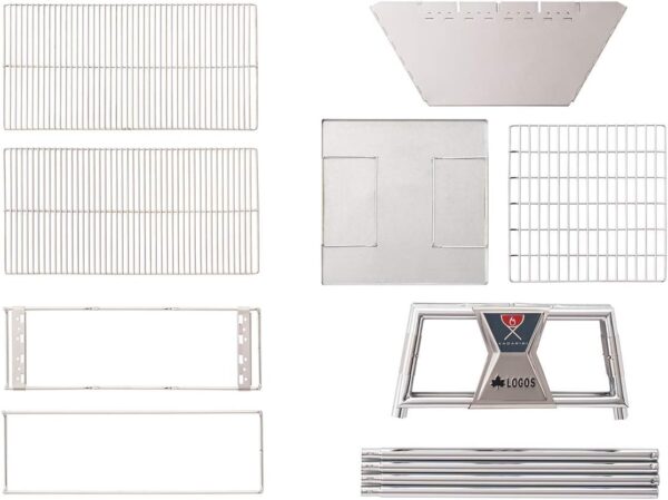 Composition: Main unit, bonfire trivet, wire lostle, ash tray, half stainless extra thick net x 2, storage bag