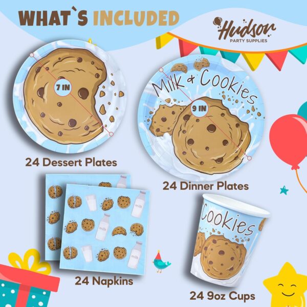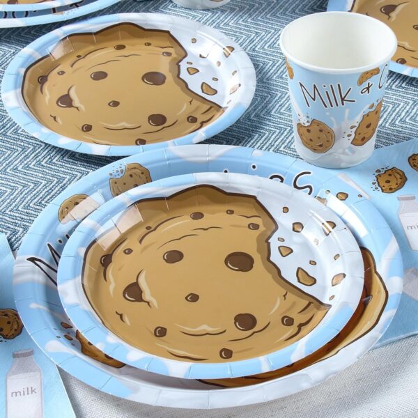 Milk and Cookies Party Supplies (Serves 24) Dinner Plates, Dessert Plates, Cups, Napkins. Chocolate Chip Cookie Birthday Decorations for Kids, Boys, Girls and More. Milk and Cookies Party Decorations