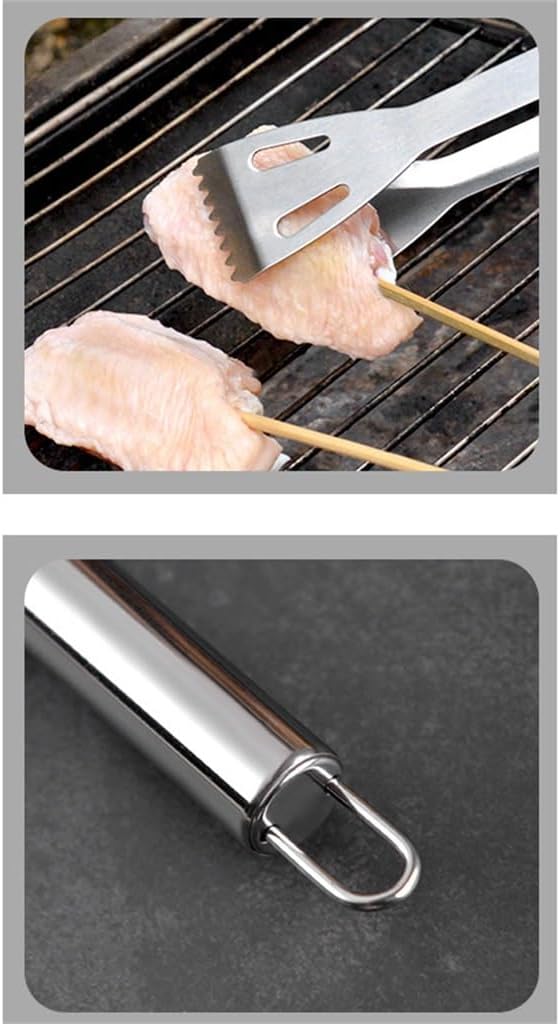 Anti slip chuck.The clamp does not slip.Hanging hole design.Can be suspended for storage.Meet the demand for barbecue.Material: stainless steelComponents: clamp, shovel, forkSpecification: BBQ Tools 3-piece SetProduct size: 38.5 * cm4.5 * cm10 * cmPackaging list:1 * Barbecue tool set (without display)Attention:Due to various factors such as monitor brightness and lighting brightness, the actual color of the product may slightly differ from the images displayed on the website.2. The pictures are for reference only, subject to actual shipment!The hanging ring design can be easily hung on the grill hook or barbecue rack.