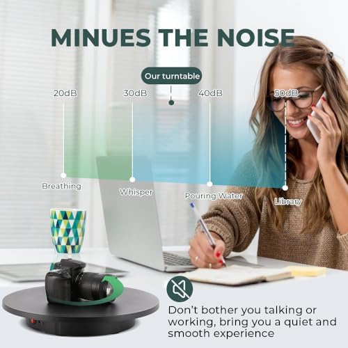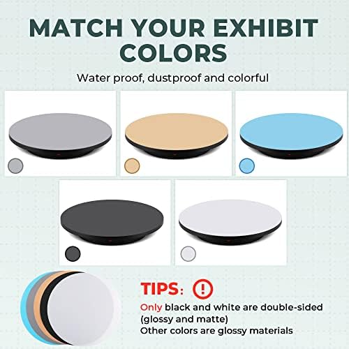 SMOOTH, NO SHAKING – The rotating stand has a smooth motor (≤50db) to avoid shake and noise during the video. Great tool for 360 degree images, short video, 3d models, exhibition and other product display. Also comes with some top two-sided(matte or glossy) colorful plate, you can choose them according to your exhibition color.