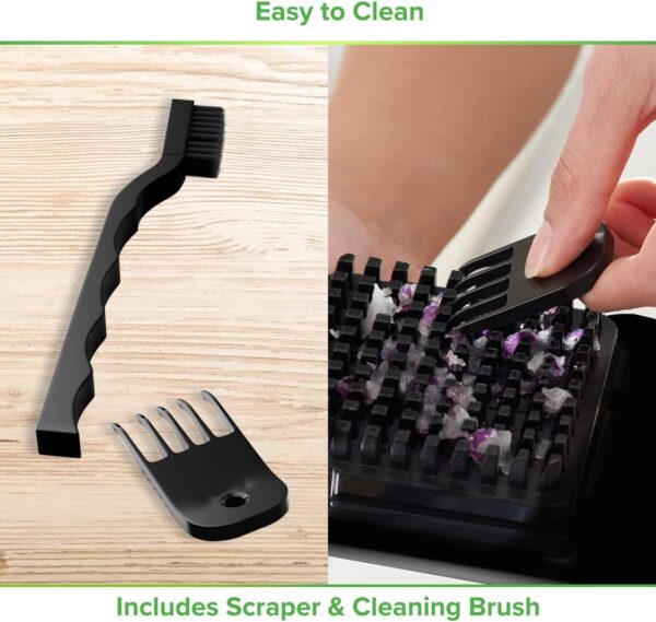 Accessories Included – This food chopper with container includes a scraper and a cleaning brush to remove any unwanted food from the blades and keep them sharper for longer.
