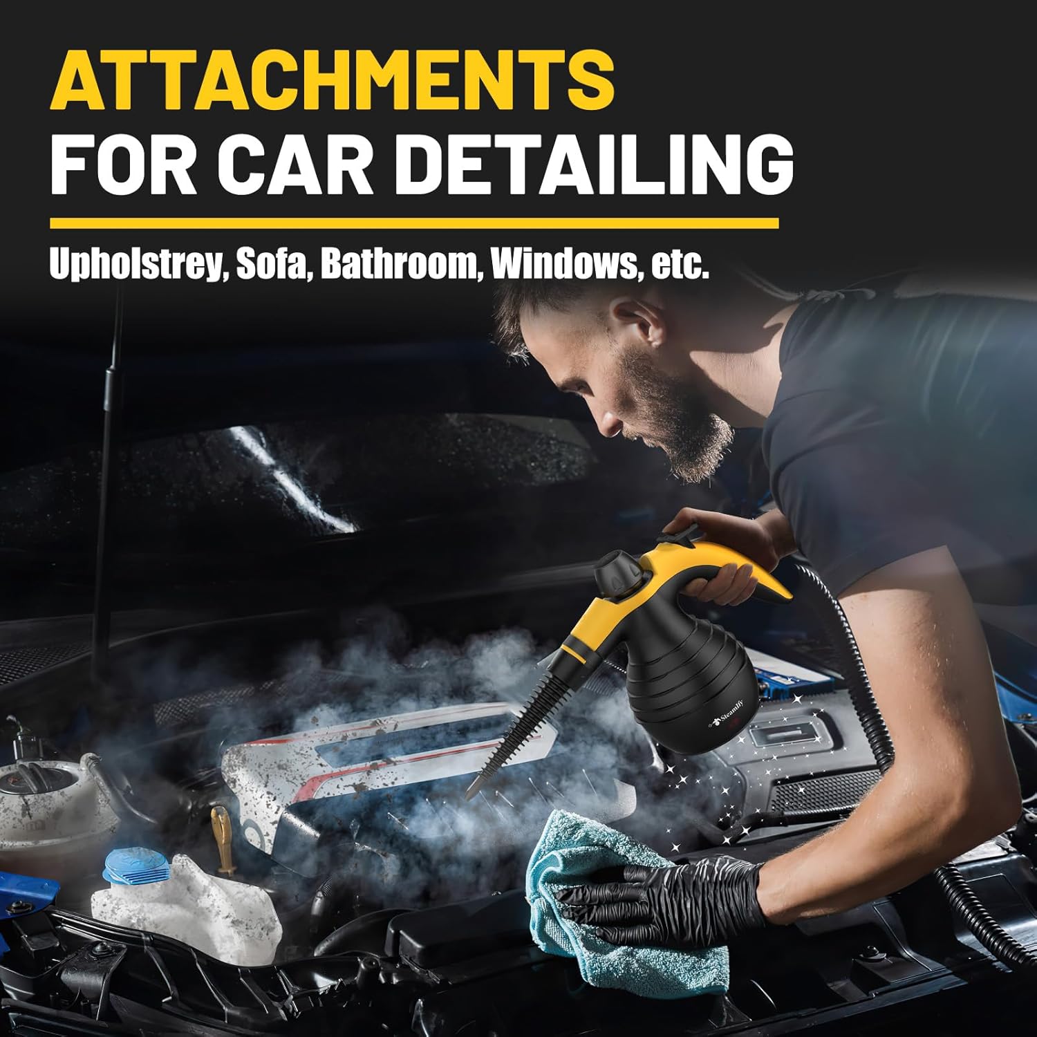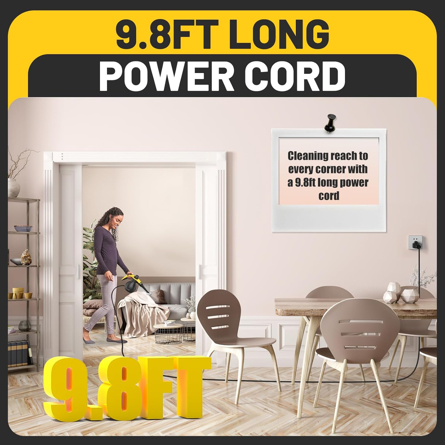 PORTABLE COMPACT AND EFFICIENT: With its compact handheld design, you can easily take this steam cleaner anywhere for quick tasks, including homes, offices, garages, and more. The 9.8-ft power cord ensures efficient operation, and its lightweight design makes it convenient to carry from one room to another in your home.