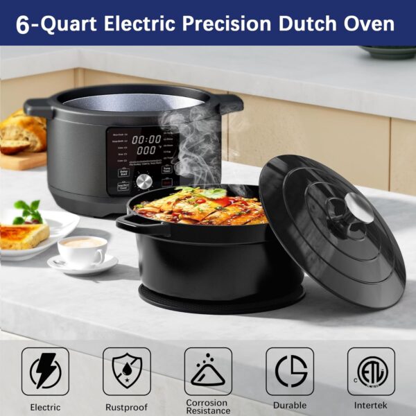 Introduction to ROTTOGOON 6-Quart Enameled Cast Iron Dutch Oven, 1500W Large Electric Cooking Pot, 10-in-1: