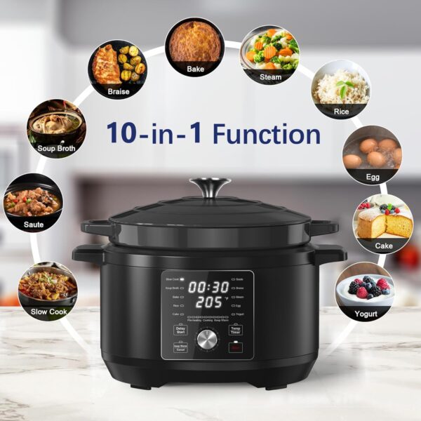 10-in-1: Slow Cook, Saute, Soup Broth, Braise, Bake, Steam, Rice, Egg, Cake, Yogurt