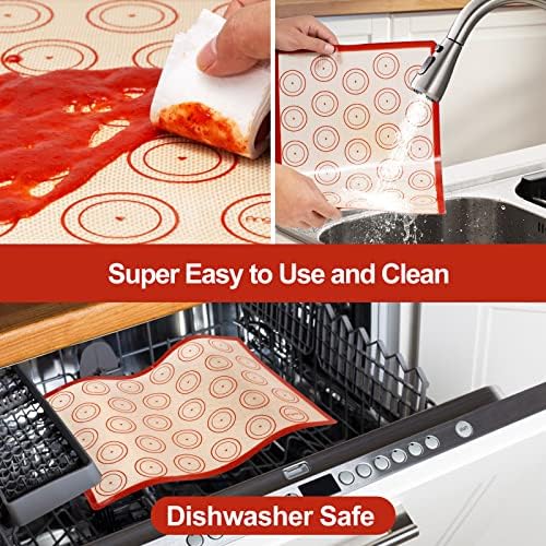【NON-STICK & EASY TO CLEAN】– Angadona Baking mats silicone for baking sheets are no stick surface for all foods, Easy clean by hand or dishwasher(top rack only)