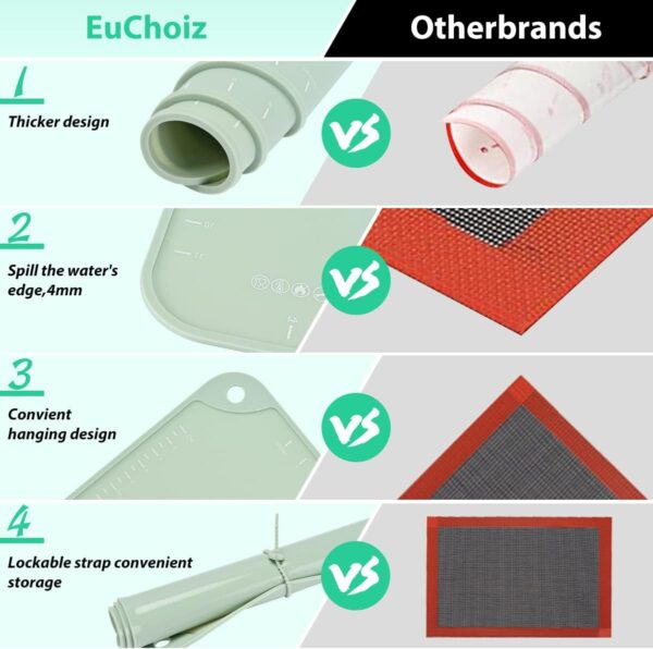 【HEIGHTENING of EDGE 4 mm】The unique raised edge design can prevent the water from spilling out when you knead the dough, Keep your desk clean. The thickness of the kneading pad is 1.3mm, which is more durable than others.