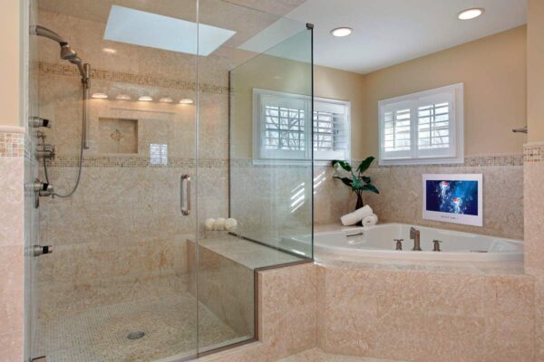 The TV provides a high-resolution picture.Take advantage of USB, playing your favourite music, video, music. 22″ Mirror bathroom TV rated IP66 waterproof, with built-in WiFi, Smart TV technology, the waterproof Smart TV provides a high-resolution picture while also allowing you to browse the web or access smart apps to easily find your favorite media.