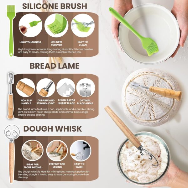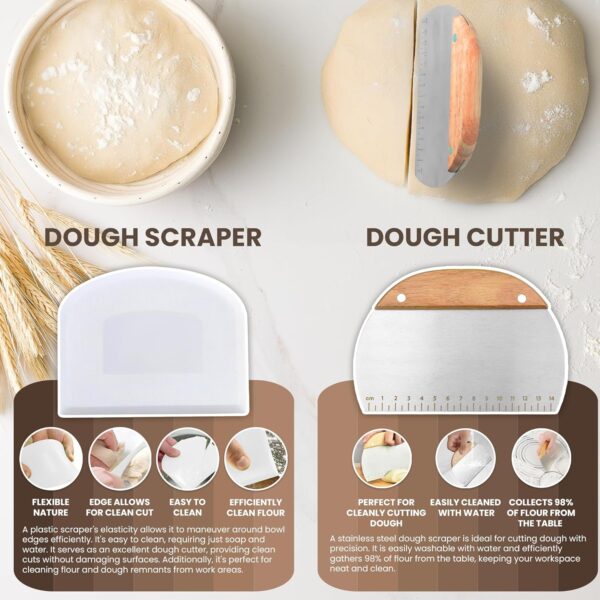The set also includes two dough scrapers and a cooking brush, which are essential tools for any bread baker. The scrapers help you handle and shape your dough, while the brush is perfect for applying egg washes or butter to the top of your loaf before baking. These tools will streamline your baking process and make cleanup a breeze.